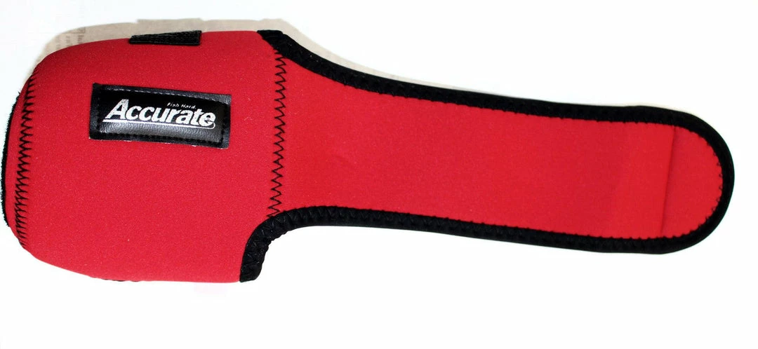 Accurate Reels has developed a custom reel cover for your reel that fits like a glove. Â It’s made from neoprene and features a heavy duty composite ring for hooking lures or hooks when used on a rod and reel. Â The rear cover wraps around the back of the reel or rod and secures it so it won’t get lost. Â It features the accurate logo and signature red and black for a sleek look.