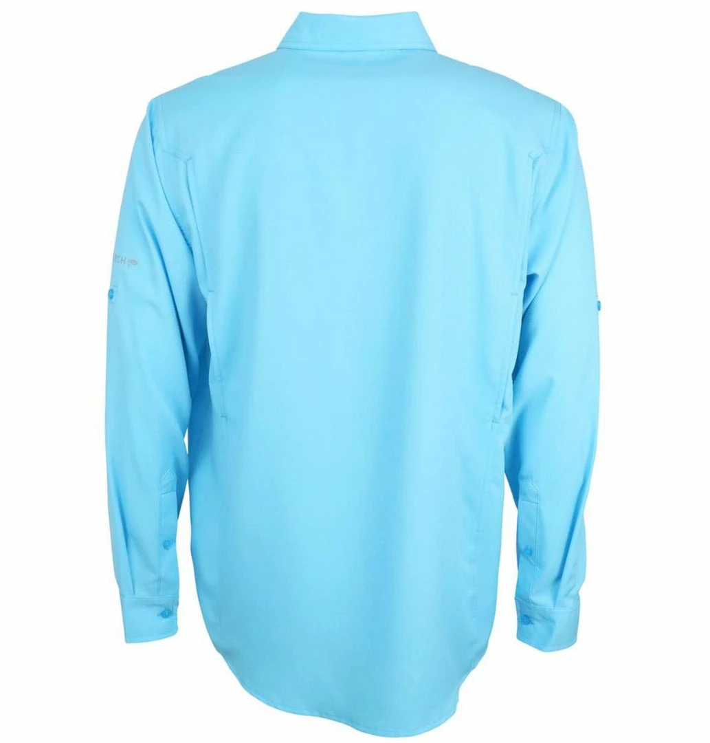 Don’t overlook this vented AFTCO Rangle Vented Long Sleeve Shirt. Constructed with lightweight polyester ripstop fabric, Rangle features vertical rear venting that helps you stay cool in sticky situations. Built-in AFBLOCK UPF 50 sun protection shields you from harmful UV rays and AFGUARD stain release technology defends against fish blood and funk. Dual front pockets offer convenient storage for terminal tackle and other miscellaneous items. This classy woven is your new wingman both on and off the water.