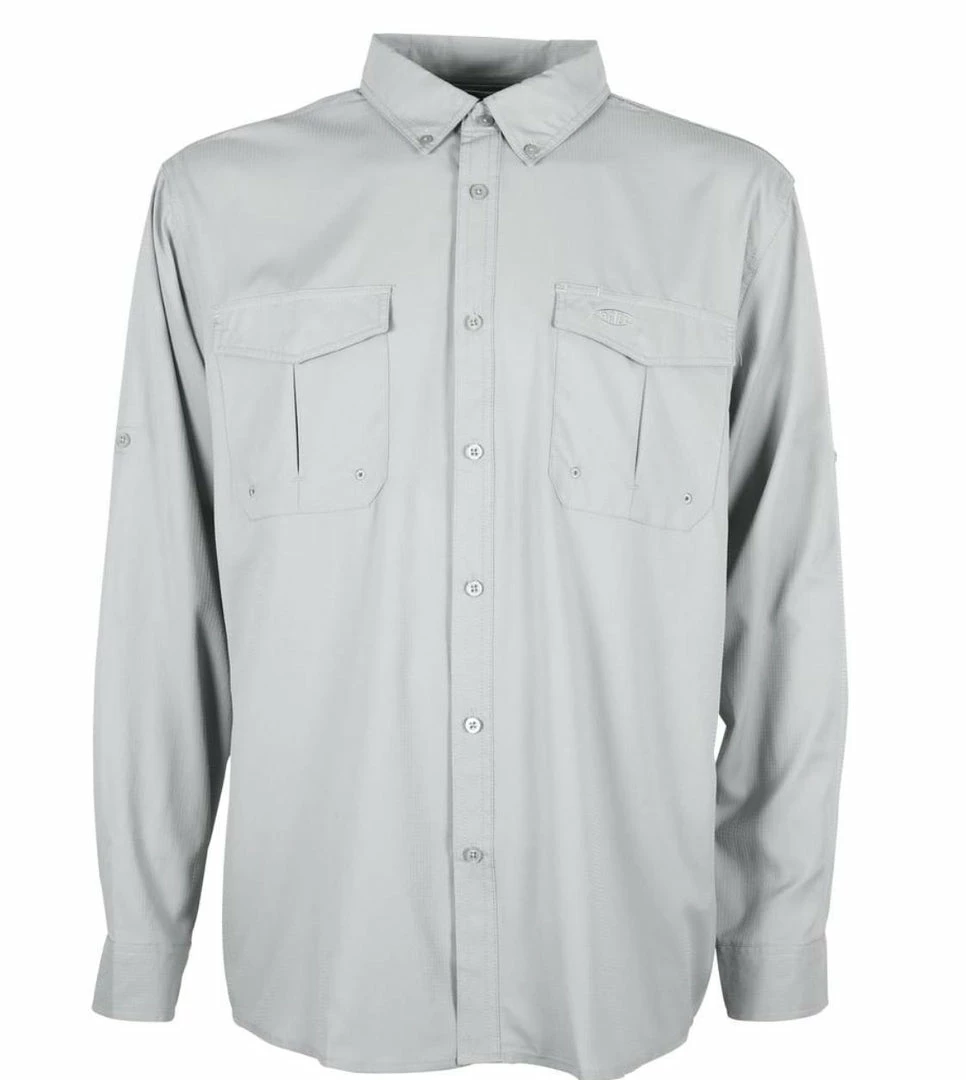 Don’t overlook this AFTCO RANGLE vented long sleeve button up performance shirt. Constructed with lightweight polyester ripstop fabric, Rangle features vertical rear venting that helps you stay cool in sticky situations. Built-in AFBLOCK UPF 50 sun protection shields you from harmful UV rays and AFGUARD stain release technology defends against fish blood and funk. Dual front pockets offer convenient storage for terminal tackle and other miscellaneous items. This classy woven is your new wingman both on and off the water.