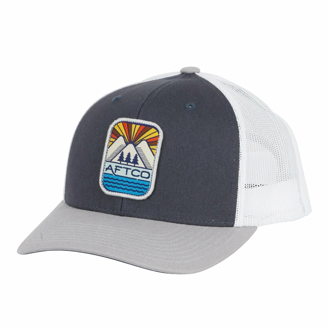The Aftco Sea To Summit Hat is a 6 panel trucker hat is made of 100% cotton and features a woven patch on a mid profile fit hat with a low curve bill. Don’t hesitate to add this AFTCO fishing hat to your growing collection.