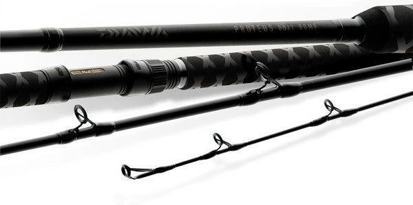 Daiwa Proteus Rods are built out of a premium graphite so they are light weight and durable. Â We like them because of the superb action, Fuji DPS stainless steel reels seat, Fuji Alconite tangle free guide, X-Tube grip, and the one piece blank through handle construction. Â With the lifetime warranty, you just can’t go wrong with the Daiwa Proteus Rods.