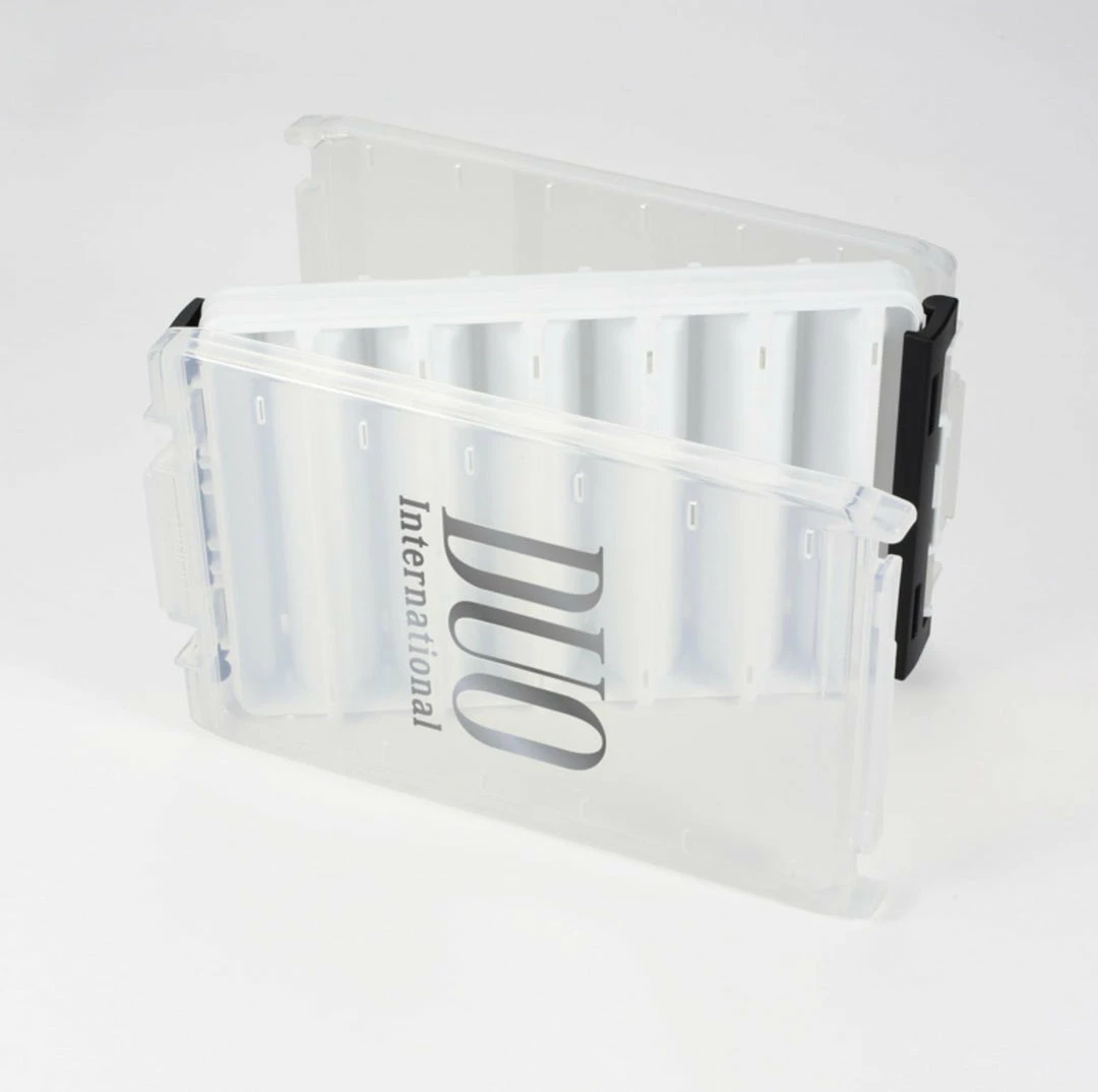 The Duo Reversible Lure Case is a compact storage box with two-sided construction with open slots on each side that are the perfect shape for slender baits such as spinbaits, jerkbaits, and topwaters. The translucent lids make finding the lure you need at a moment’s notice quick and secure latches keep your baits safe.Â