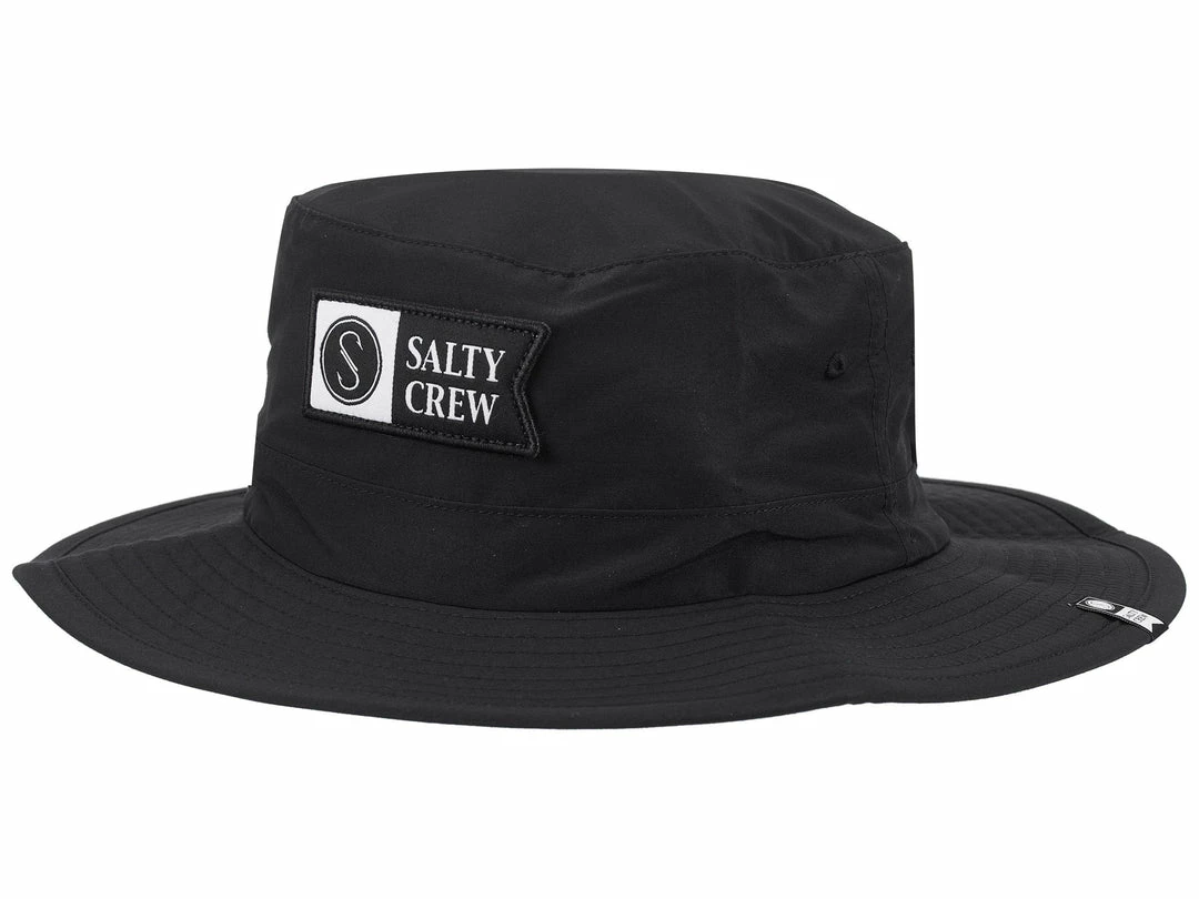 Made from highly water-resistant polyester, the Salty Crew Alpha Tech Boonie Hat also offers protection from light precipitation and spray. Coupled with an adjustable drawstring lock on the back and a removable chin strap. Boasting a woven Salty Crew S-Hook damask patch on the front.