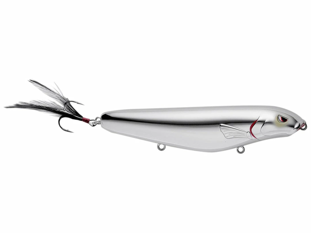 Not only is the Fat Papa Walker slightly bigger than standard walk-the-dog topwaters, but unlike its cigar-shaped predecessors, it features a distinctly distended belly that pushes massive amounts of water. It enables anyone to create a wide “glide” without much effort. As a result, expert topwater anglers will be able to make it perform all sorts of fish-tempting tricks, while even rank beginners will get this baitfish imitator to work properly with minimal effort.