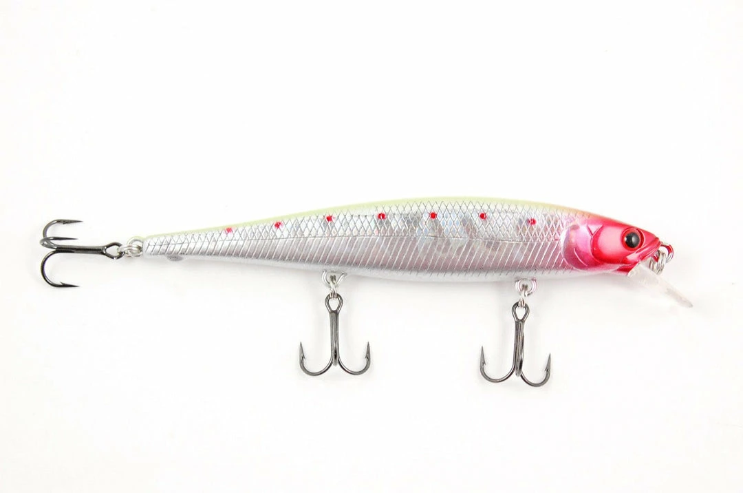 The Lucky Craft Flash Pointer 100 is a slow-sinking jerkbait designed to more effectively fish the critical 4 – 5 foot depth zone. Combining the benefits of the Pointer and Flash Minnow, this bait has great side-to-side action and slowly floats allowing it to be used in various shallow water situations. It has a tungsten weight transfer system which shifts to the butt of the bait during a cast to carry the bait an incredible distance.