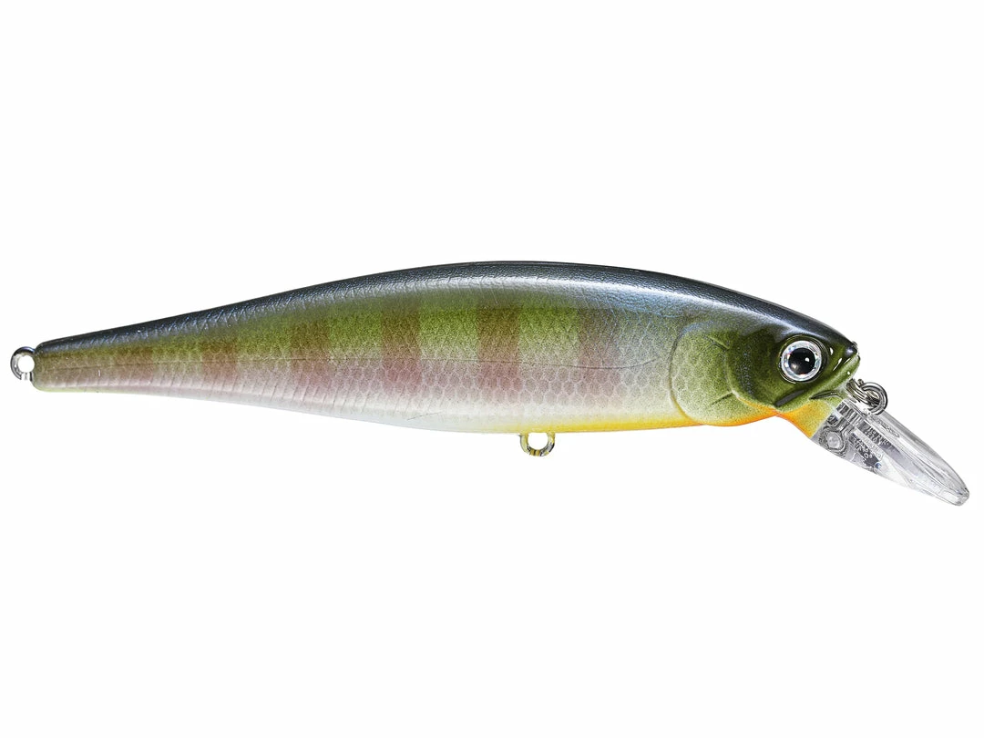 If you’re looking for a great size jerk bait, the Lucky Craft Pointer has been designed with a very low center of gravity through the use of special brass weights. We love the action on the Pointer 65, 78, and 97MR, try them out depending on the size of the baitfish you’re mimicking. The low center of balance causes the lure to wobble and vibrate whenever the retrieving motion is stopped. It will suspend 4 -5 feet deep and will emit an intriguing bass-calling vibration, while in the suspended state. A short twitch of the fishing rod will generate the “Walk the Dog” action under the water.