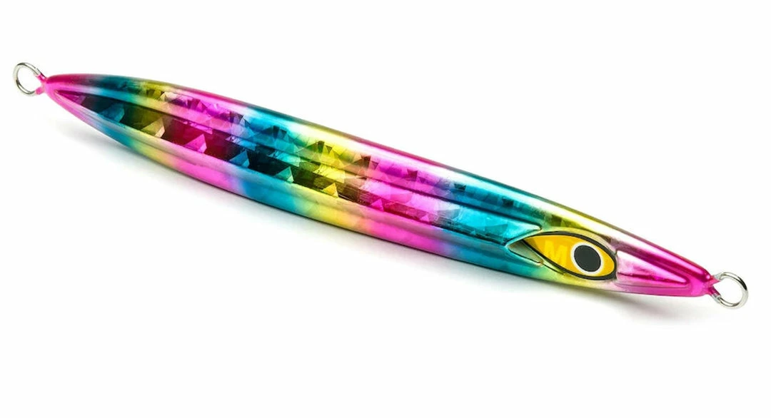 Mustad’s Rip Roller Slow Fall Jig has a slim, streamlined profile for quick descent on a tight line. Its centered weight gives it a stable but rolling motion on a slack line.