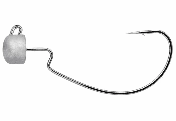 The Owner Block Head Offset Head head features an offset hook for weedless applications. Still features the same shape mushroom style head as the original Blockhead, and is ideally paired with a short stick bait. Features include a forged shank, Super Needle Point, and Black Chrome finish. Available in both Natural and Green Pumpkin colors.