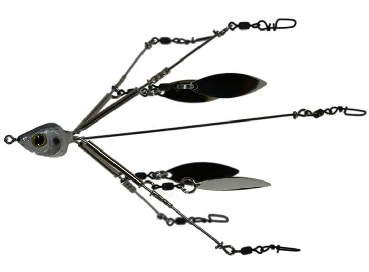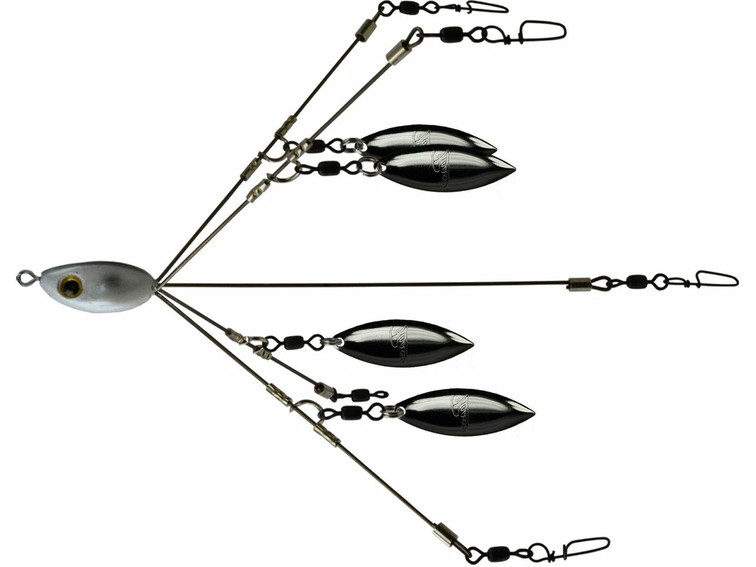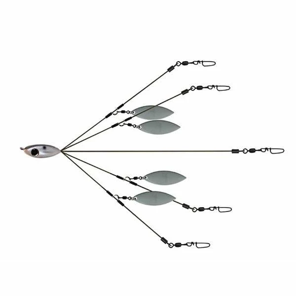 The Finesse School-E-Rig was designed with the collaboration of Elite Series Pro, Fred Roumbanis, and FLW Tour Pro, Brent Ehrler. The Bait Ball incorporates 3.5″ piano grade wires along with #3 willow blades plated in 24k gold or nickel for the ultimate flash and added vibration.
