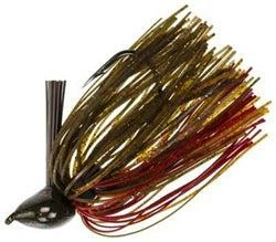 Utilizing a cobra shaped head, the Denny Brauer Structure Jig is the ultimate choice for any structure fishing with a jig. Designed by renowned jig fisherman, Denny Brauer, Strike King’s Structure Jig seeks to increase hookups while simultaneously decreasing hangups. Each element of this jig was painstakingly tweaked until they all worked in harmony and met Brauer’s demands. Constructed around a special zero degree line tie Owner 2x Strong Cutting Point Hook, this jig presents optimal bite delivering the hook penetration necessary when fishing in and around structure. The unique positioning of the cobra head places less material between the hook point and line tie – which follows the theme of better hook-up ratio by keeping the plane of the hookset clear of obstructions. When it came to reducing hangups, Strike King found the cobra shaped head to be much more effective at freeing itself from snags – sort of acting like a counter weight against the snag. Increased weedlessness can also be attributed to the Structure Jig’s weedguard angle that Brauer developed based on years of cutting down and tweaking his stock jigs guards the way he preferred.
