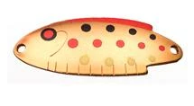 Thomas Buoyant Trout Spoons work wonderfully in mountain lakes and streams. The 1/6 and 1/4 ounce spoons are the hard to find Gold / Red metal version with the black, red & yellow accents and hammered finish that mimics the look and light flash of real scales. This color pattern is a proven best performer and best seller for stream trout fishing in the Sierra Nevada Mountains and Foothills of California. It works season after season in that region. An excellent choice in areas where live bait is not permitted.