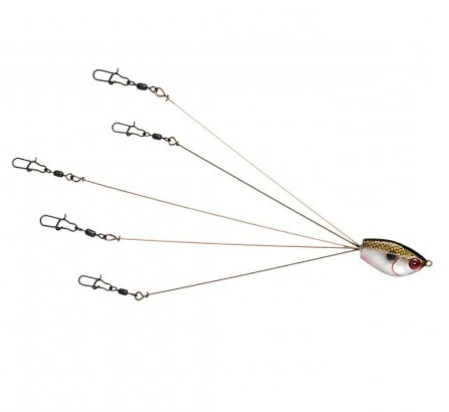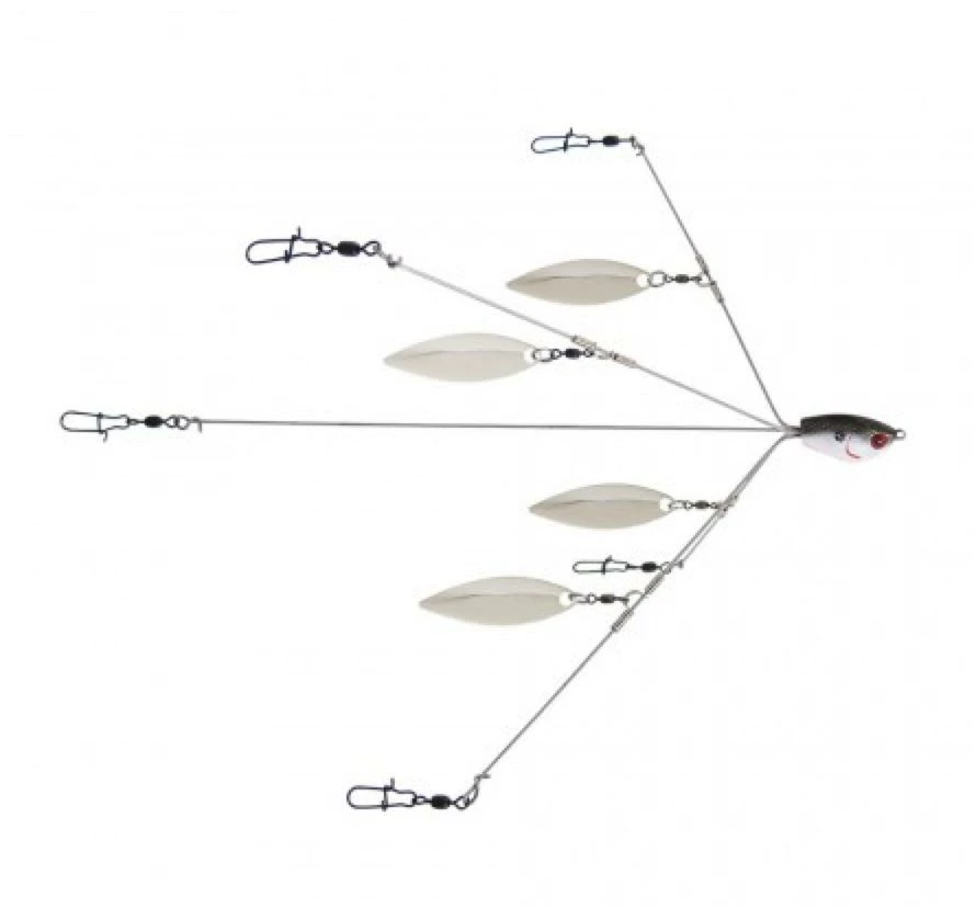 The Yum Yumbrella Umbrella Rigs is the most advanced multi-lure on the planet. This 7″ Multi-Swimming 5-wire rig is part of the Bait School Technology phenomenon. Rig it with 5 jig heads and swimbaits to mimic a realistic school of baitfish.
