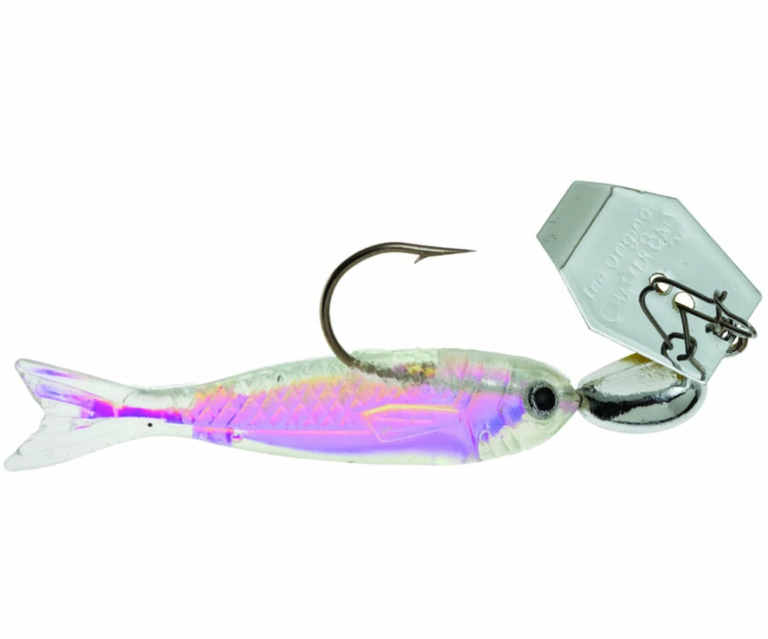 Z-Man Flashback Mini Chatterbaits combine a holographic soft plastic minnow body with a downsized version of Z-Man‘s exclusive ChatterBait creates a unique bait that is deadly on panfish, trout, crappie, bass, and more! On the retrieve, these baits feature an exaggerated side-to-side motion and distinctive vibration that gamefish just can’t resist. And when you combine that action with a multi-hue holographic flash, you’ve got a fish-catching combination that knows no equal!